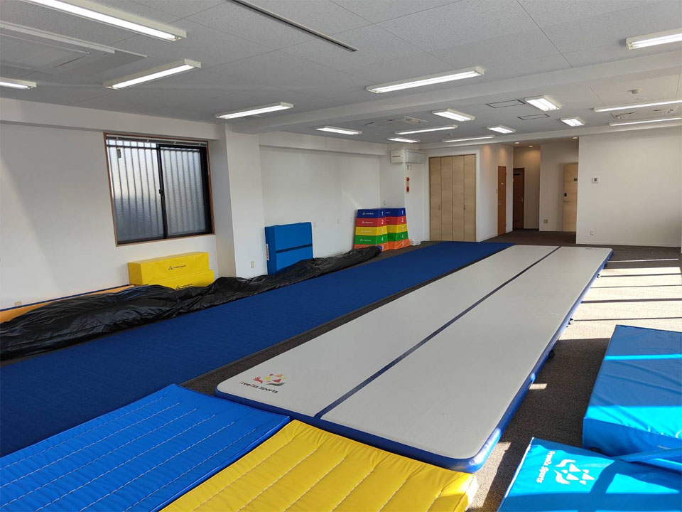 学校で使うような木の跳び箱ではありませんがクッション素材の跳び箱や、スプリングの効いたロイター版もあります。このように施設の設備が異なり、遊び方が今までと変わることをご承知おきください。どんな指導や遊びができるかも、先生たちも使いながら考えていきますので楽しみにしていてください。