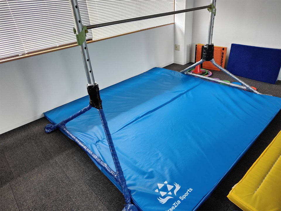 そして、4月から新しい場所で行うにあたり、施設がらいふと大幅に変わります。大きなトランポリンはありませんが、代わりに大きなエアマットや一面広々としたスペースがあります。鉄棒もらいふと違って大きく頑丈です。空中〇〇や蹴上がりのようなものは、らいふの時よりやりやすくなるでしょう。