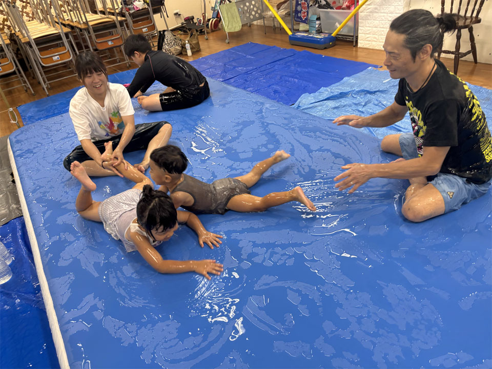 もう一つは、去年からずっとやりたいと思っていたスライムプールです。これもゆか先生の自宅で実験をしてみました。