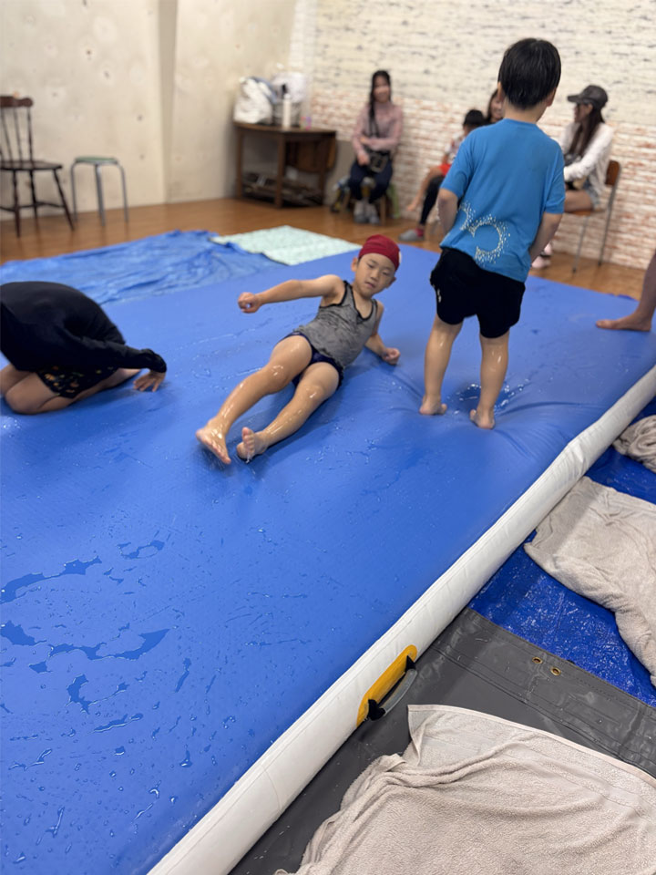 途中音楽をかけてダンス?タイム!ほとんどの子が音楽に合わせて大きいトランポリンで跳ねまくっていました!