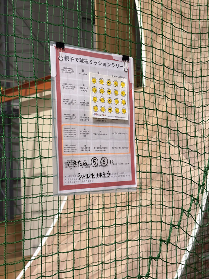 10月前半に「親子球技ミッション」というイベントを開催しました。参加費はなく、気軽に取り組んでいただけるミッションを7個用意しました。ほとんどの方が来た際にご利用くださり、親子で運動する姿が目立ちました。