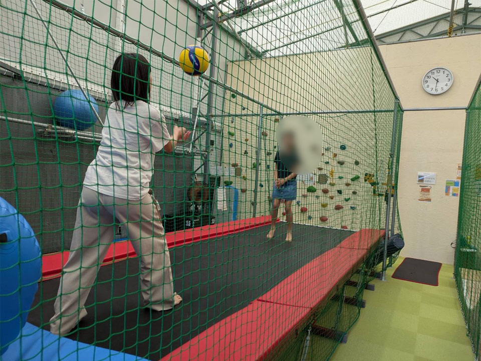 そして、今回のミッションの最難関であったバレーボールラリーです。オーバーハンドパスか、アンダーハンドパスを親子で10回繋げたらクリアできるというもの…一回でできた親子はいなかったのではないでしょうか?