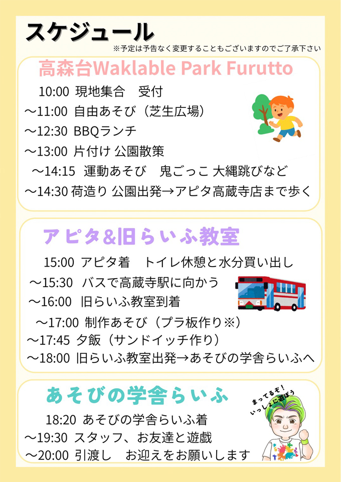 先日の夏休みに「ひんやりおやつ付き運動あそび」をご利用の保護者さまから「お出かけイベントも企画してほしい」ということで、ゆうき先生と一緒にイベントを考えました。らいふでは初めてのお出かけイベントとなります!