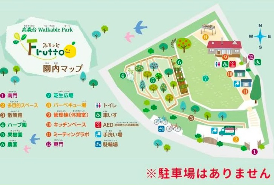 「お出かけ先はどこ?」っと遠くを思い浮かべるかもしれませんが、今回は高蔵寺から車で10分ほどのところにある新しい公園「高森台 Walkable Park Frutto」からスタートします。そちらではBBQと運動遊び、公園散策をします。