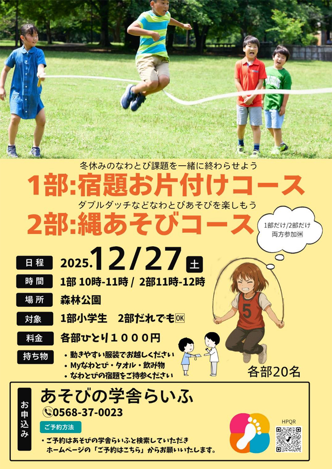 たくさんの方に縄跳びの楽しさが伝わり、「できた!」が増えるように支援していきますので、たくさんのご参加を待ちしております。ご予約はすでに始まっています。ホームページの予約のところからお願いいたします!