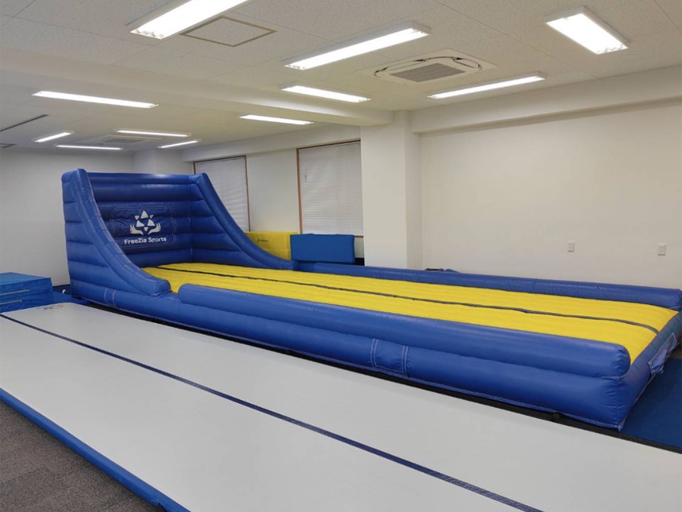 学校で使うような木の跳び箱ではありませんがクッション素材の跳び箱や、スプリングの効いたロイター版もあります。このように施設の設備が異なり、遊び方が今までと変わることをご承知おきください。どんな指導や遊びができるかも、先生たちも使いながら考えていきますので楽しみにしていてください。