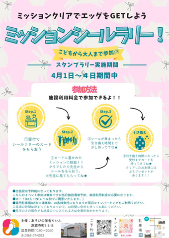 さて、ここからは本題…イベントの告知をしていきたいと思います。イベント名は「イースターエッグをGETしよう ミッションシールラリー」です!!
