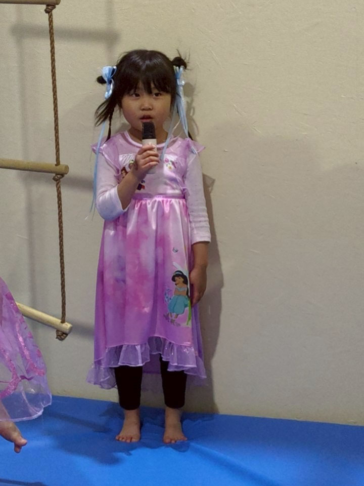お楽しみのゲームが終わると、ゆうき先生の大役がやってきます。先生たちに見守りを託しお色直し…ゆか先生が流してくれた音楽とともにお披露目です!