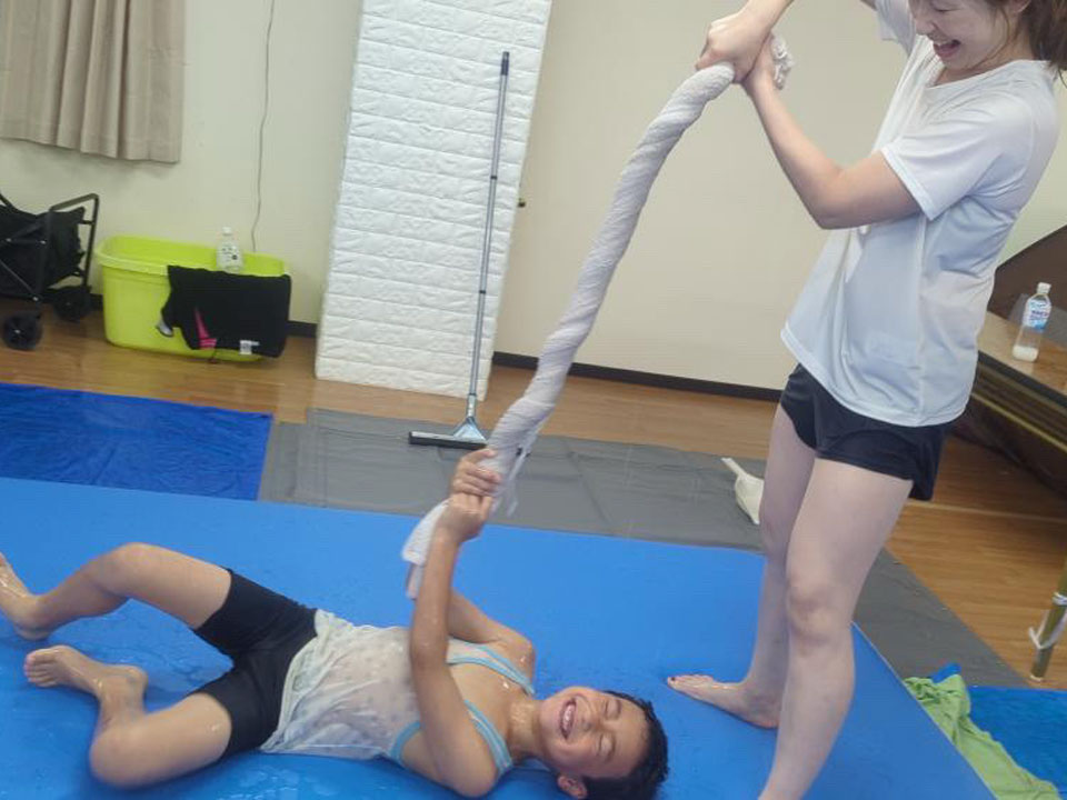 2人目のお友達はらいふに初めてくる子で、かなり緊張していました。しかし、当日らいふで遊んでいるお友達に知り合いがいたり、通り過ぎるご家族がお友達だったりと、まわりから応援を受けながら練習することになりました。