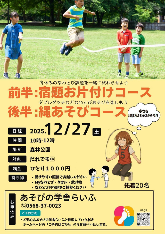 12月はたくさんのイベントがありますが、縄跳び月間で毎週土曜日に縄跳びイベントがあります。そこで一部訂正がありますので。お知らせいたします。