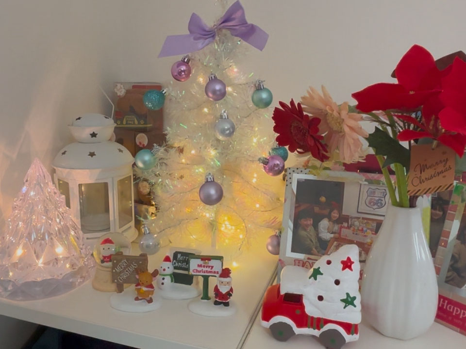 だんだん行事ごとが面倒な大人になってきましたが、毎年クリスマスのリースとクリスマスツリーや小物は飾ります。ツリーも昔飾ってた150センチくらいの大きなものではないですが、今は卓上サイズのこのクリスマスツリーがちょうどよく、飾りもシンプルでお気に入りです。